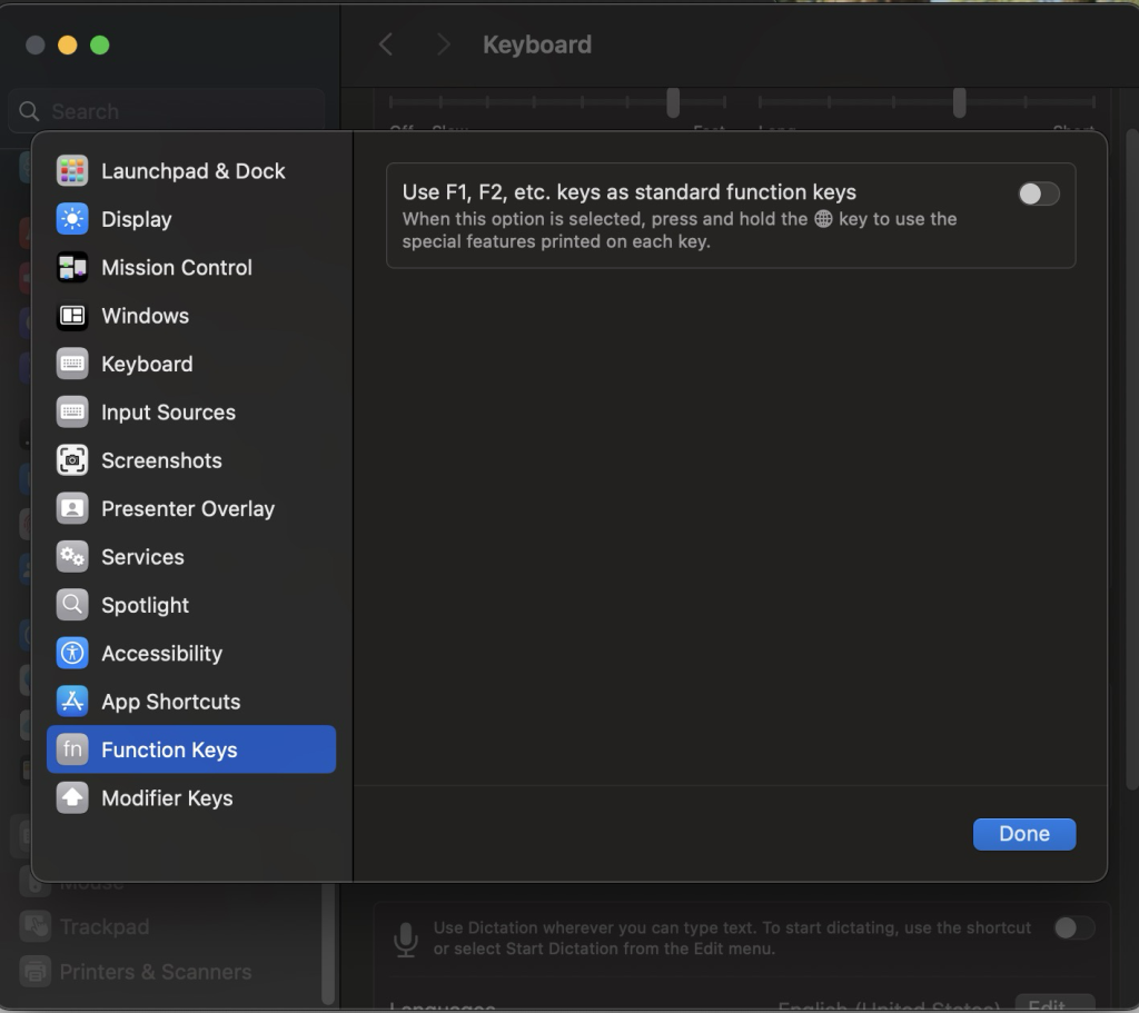 I use function keys ( Fn ) as modifier in Keyboard Shortcuts